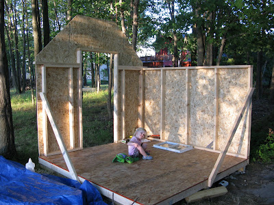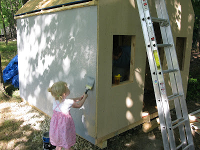 The other really exciting thing is that back in May Fiona and I went to a benefit walk at the Zoo with my mom to raise money for Wigs for Kids (who I donate my hair to every 4 years or so-it's almost time for my third donation, but it's hard to cut so much off all at once). Anyhow there was a raffle there for a play house and we won it!!!! We were so excited. Dan and I have been working for 2 months now on the house. I feel like we could seriously do habitat for humanity now. It's more completed now than the two pictures show, but the first one gives you an idea of the size-- It's HUGE!!! The second is a cute picture of Fiona painting the house. She had a great time helping out.